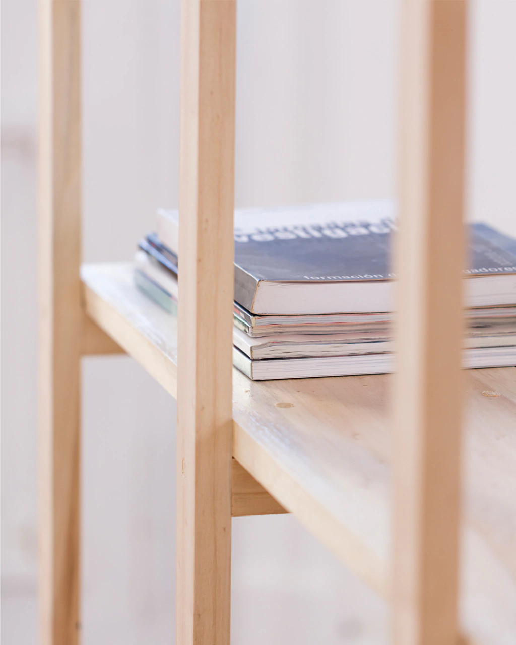 Estructura en madera maciza de álamo, con veta sutil y tono cálido.