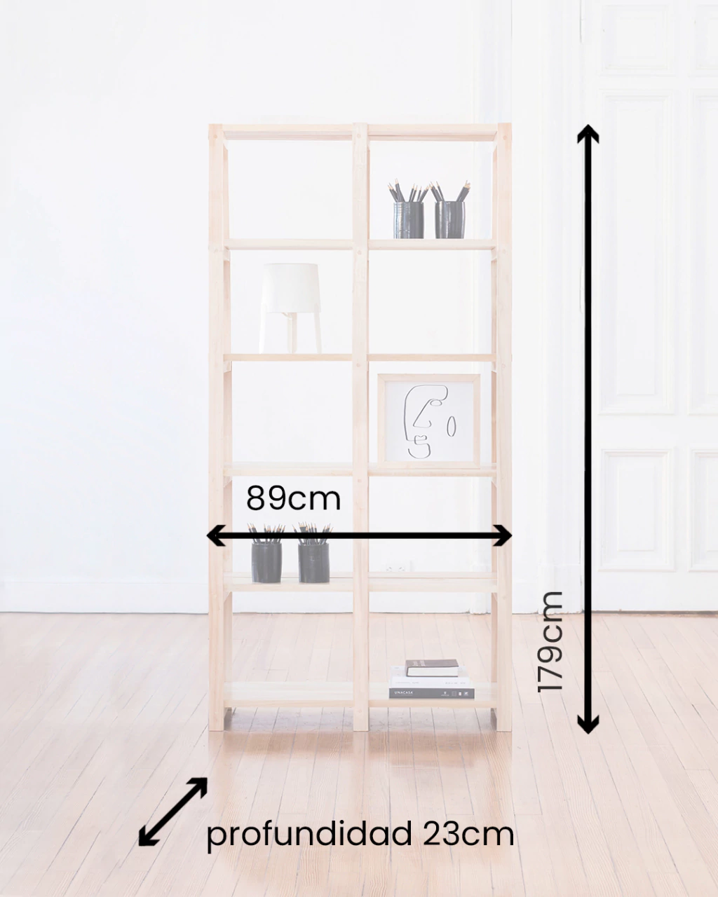 Completamente abierta, es ideal para usar como biblioteca, estantería de apoyo o divisor de ambientes liviano.